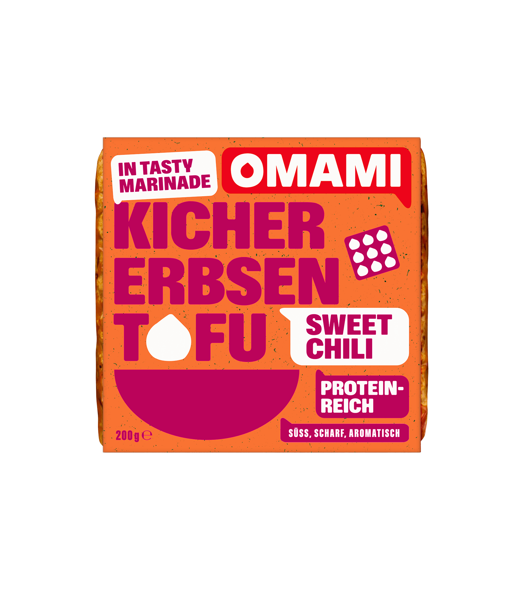 Zutaten: 90 % Kichererbsentofu (Kichererbsen 83%, Wasser, Gerinnungsmittel (Magnesiumchlorid, Calciumchlorid)), 10% Würzmarinade (Wasser, Rapsöl, Zucker, Salz, Kichererbsen 5%, Chili 3,3 %, Maisstärke, Gewürze, Gewürzextrakte).